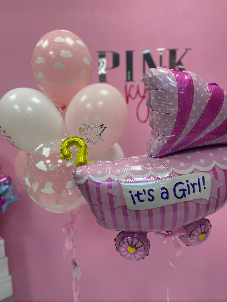 Візочок і фонтан. Колір: Рожевий, Розмір: Малий, Матеріал: Фольга — чудовий вибір для святкового настрою! Ідеально підходить для декору на день народження, вечірку чи будь-яку іншу урочисту подію. Висока якість та яскравий дизайн зроблять ваше свято незабутнім.
