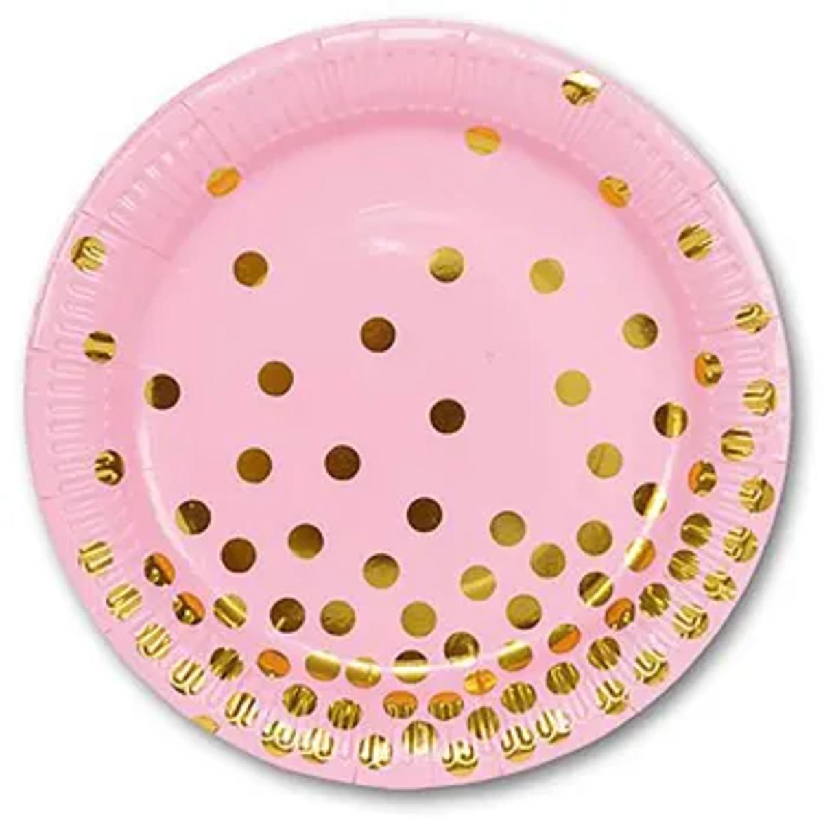 Головна > Каталог > ПОСУД > Тарілка рожева з золотим горошком 23 см