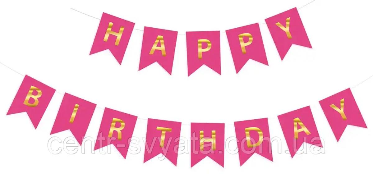 Розтяжка “HAPPY BIRTHDAY” золото на фуксії