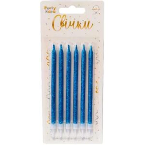 Свічки глітер синій з підставк 12 см 6 шт