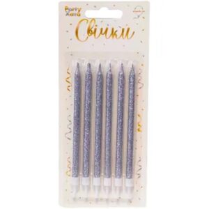 Свічки глітер сріблястий з підставками 12 см 6 шт