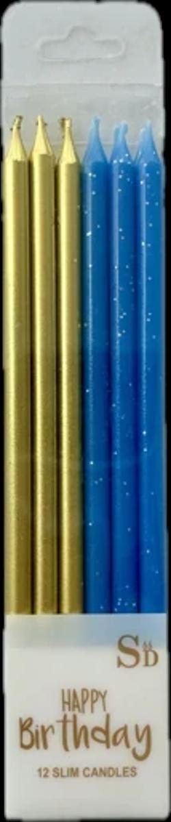 СВІЧКИ ДЛЯ ТОРТА МІКС ЗОЛОТИХ ТА СИНІХ З БЛИСКІТКАМИ 12 ШТ